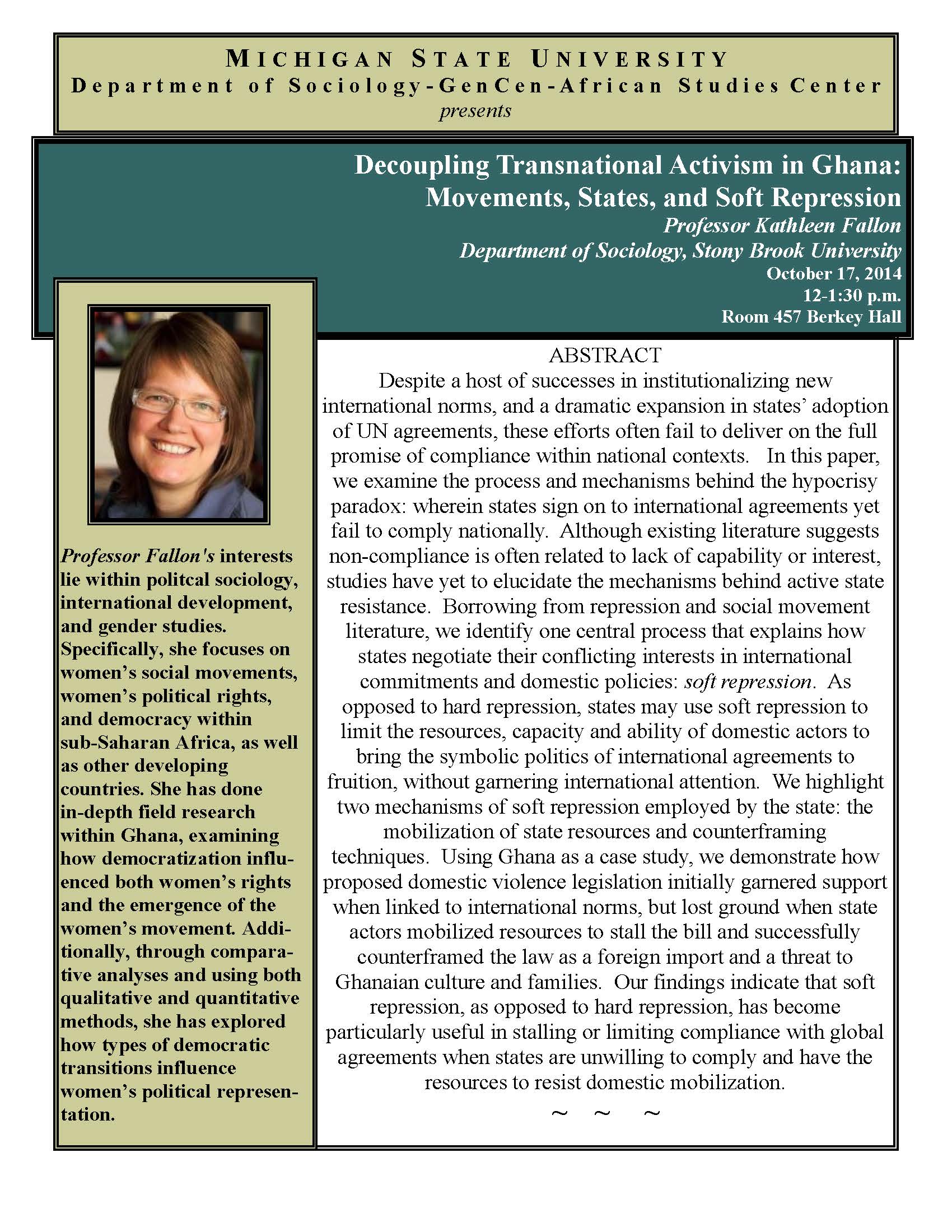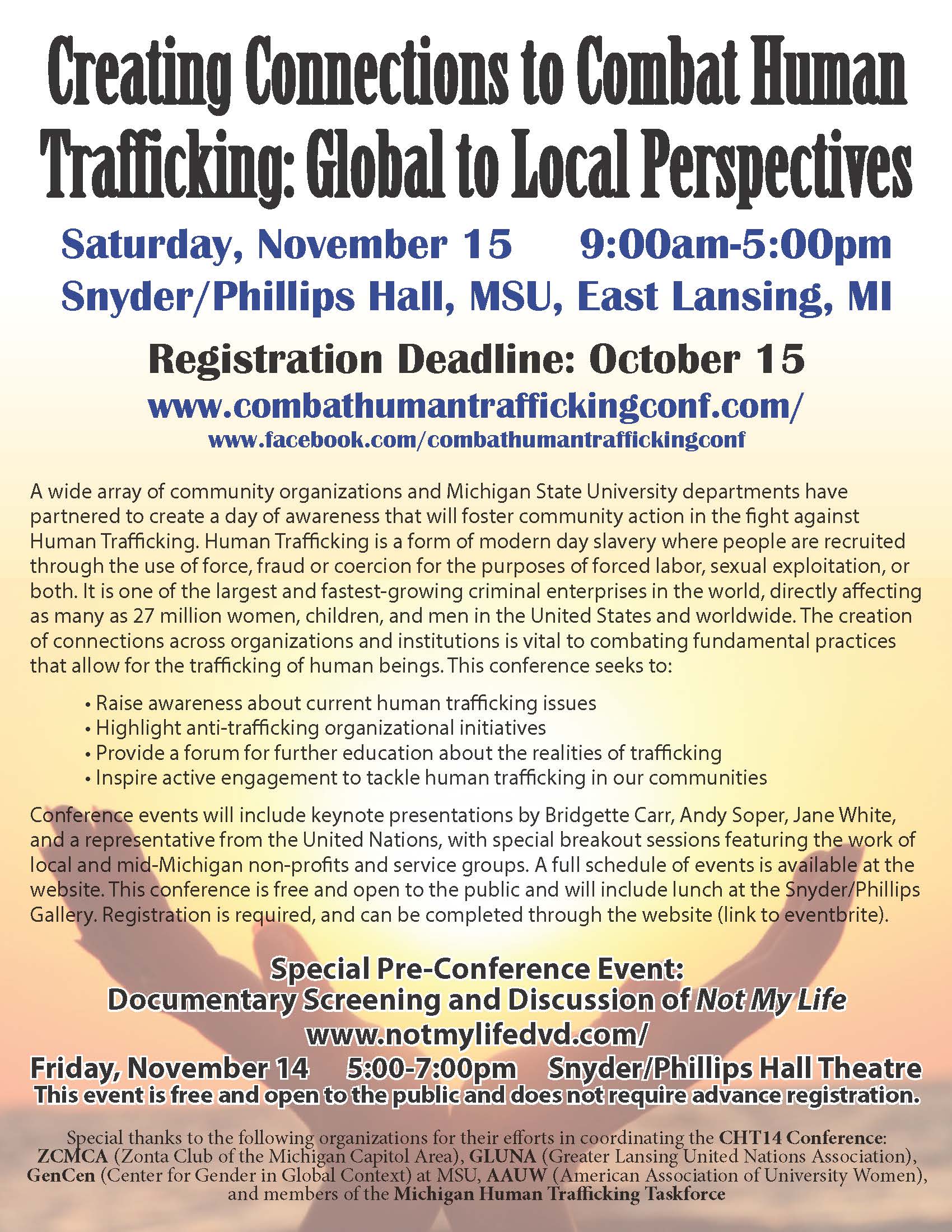 Co-Sponsored by: the Residential College in the Arts and Humanities, Zonta Club of Michigan Capital Area, Greater Lansing United Nations Association, and the Michigan Human Trafficking Task Force