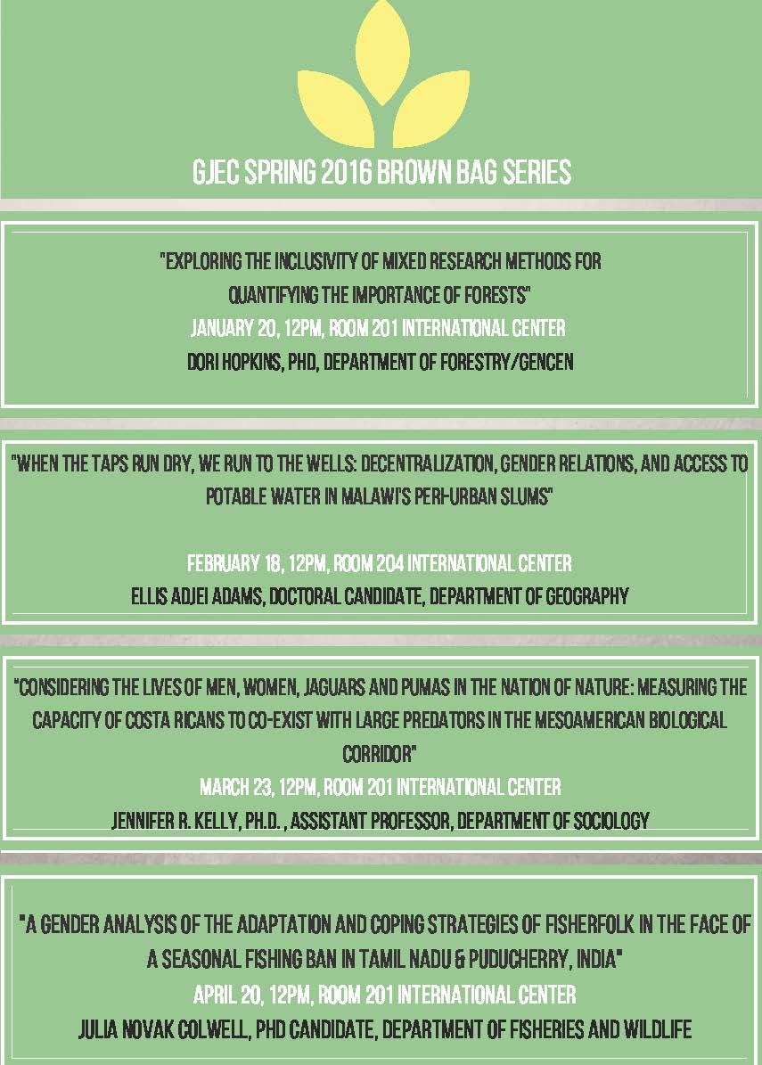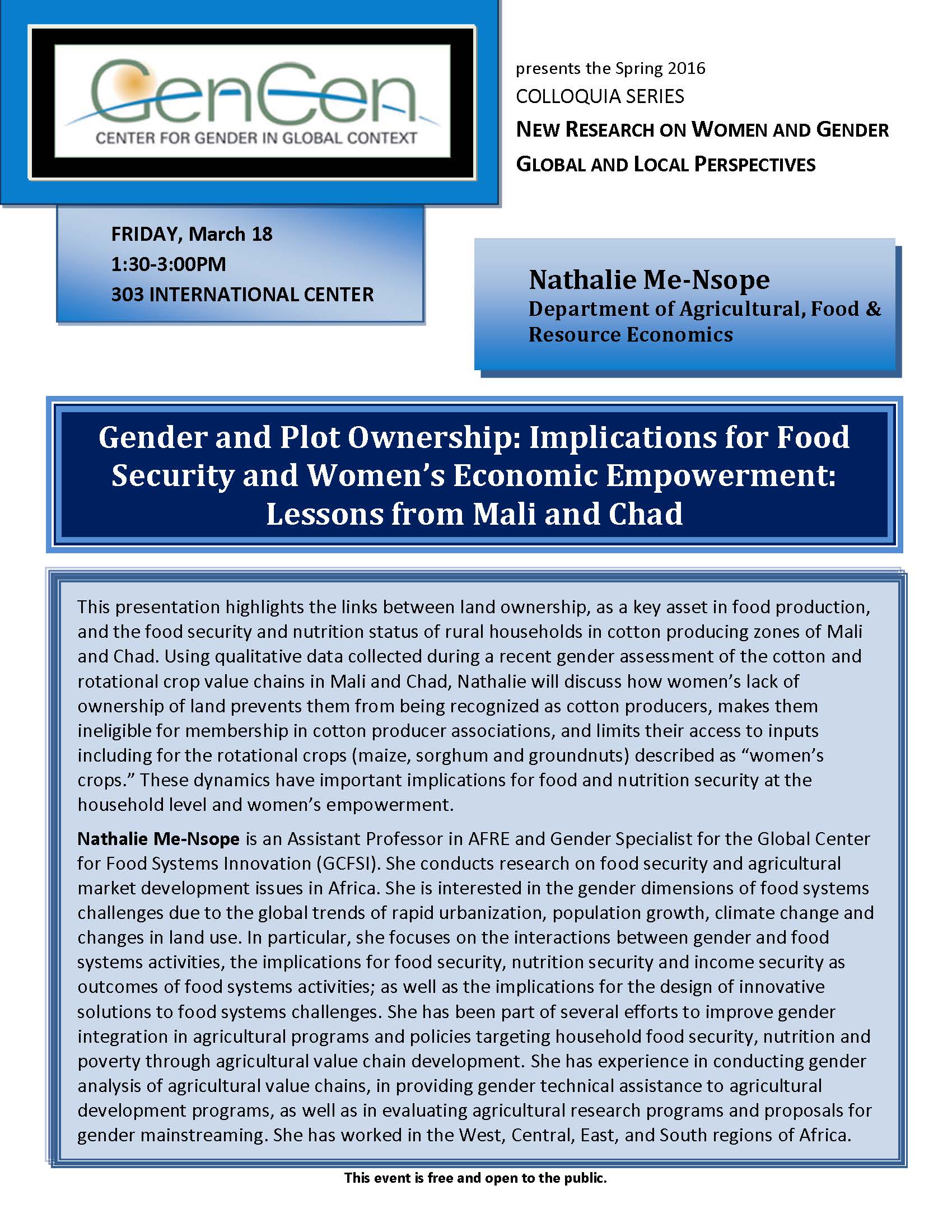 A Gender, Justice & Environmental Change (GJEC) Brown Bag Series presentation by Michelle Larkins, PhD Candidate, MSU Department of Community Sustainability and Natalie Me-Nsope, PhD, MSU Global Center for Food Systems Innovation